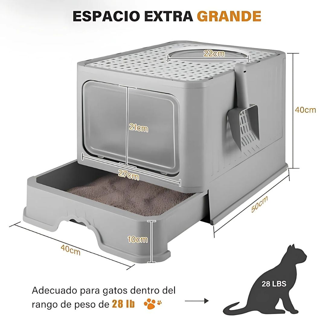 - Limpieza fácil: Simplemente desliza la bandeja hacia afuera, usa la cuchara incluida para retirar la arena y vuelve a colocarla. Además, el guante y el cepillo son perfectos para un aseo rápido de tu gato.