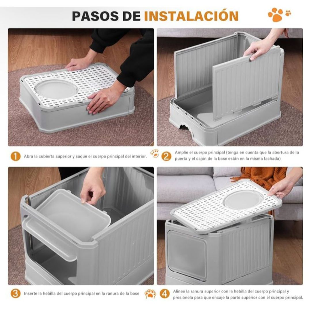 - Limpieza sin complicaciones: Gracias a su bandeja extraíble, puedes limpiar la caja sin desmontar toda la estructura. ¡En pocos segundos, tu casa vuelve a estar libre de arena!