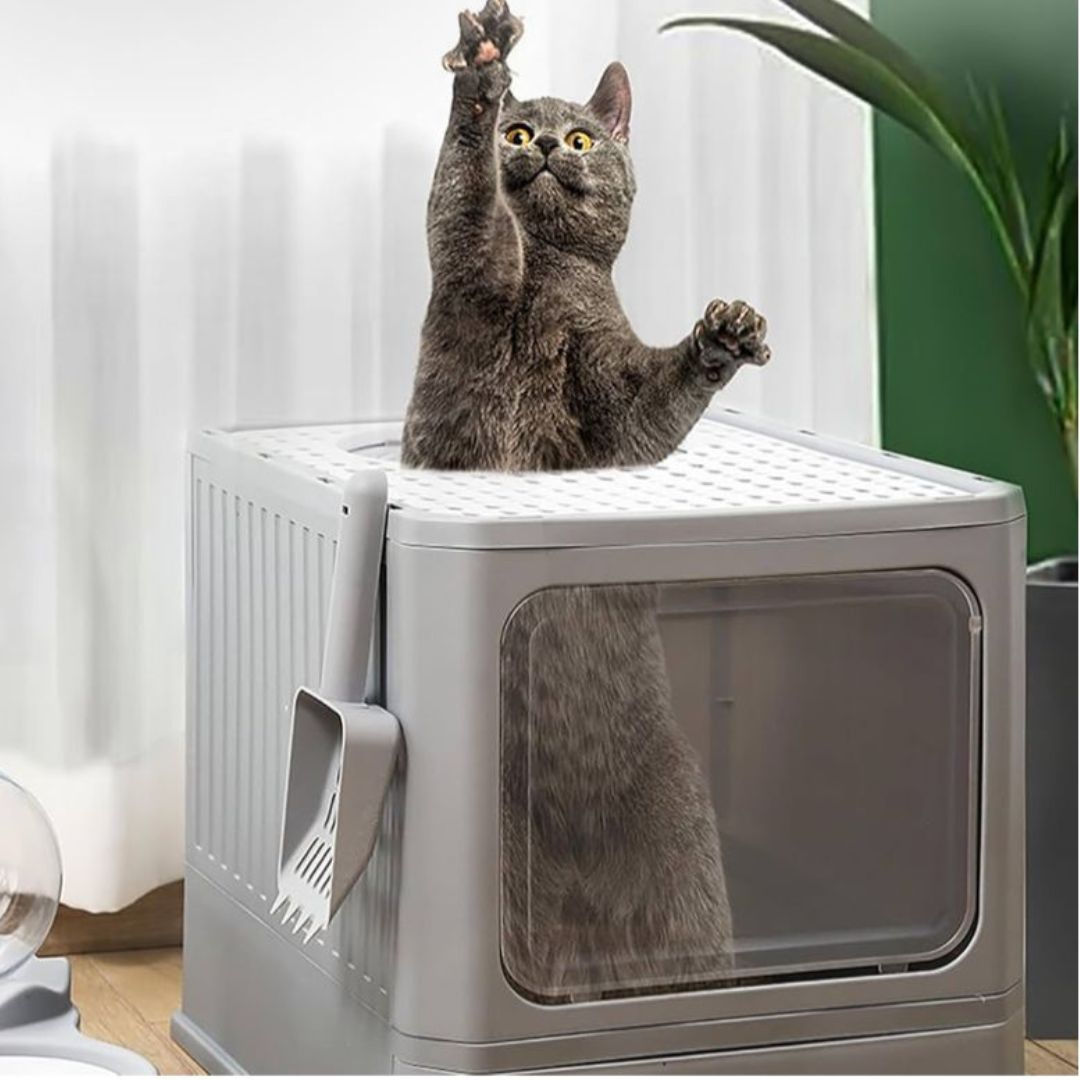 - Entrada y salida cómodas: El gato entra por la puerta frontal, pero sale por la parte superior, lo que evita que la arena se derrame por toda la casa.