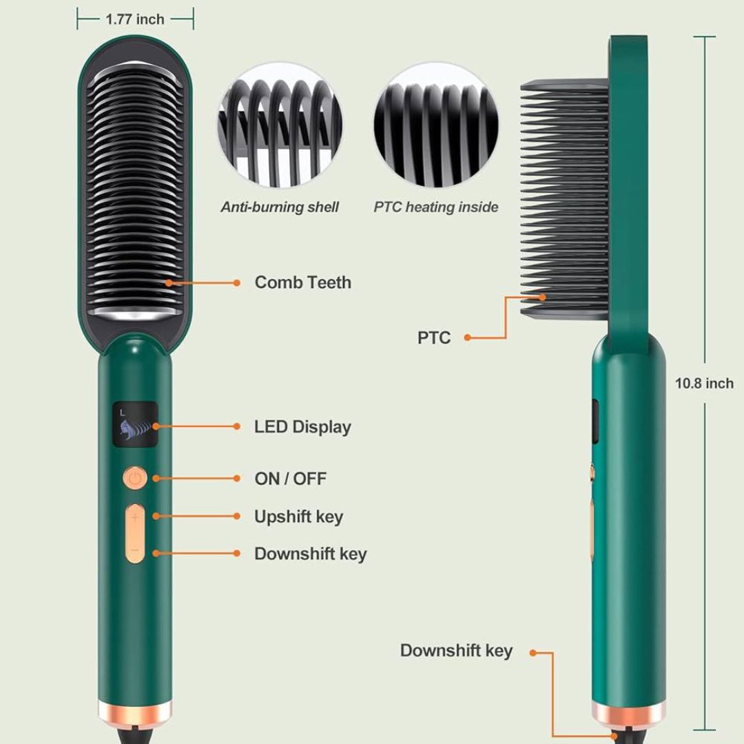 💕 2 en 1: Alisa y peina fácilmente: Diseñado para mujeres con cabello de 5 pulgadas o más, este cepillo combina un peine circular con una plancha alisadora para que logres el estilo perfecto en un solo paso. ¡Ahorra tiempo y esfuerzo! ⏱️✨