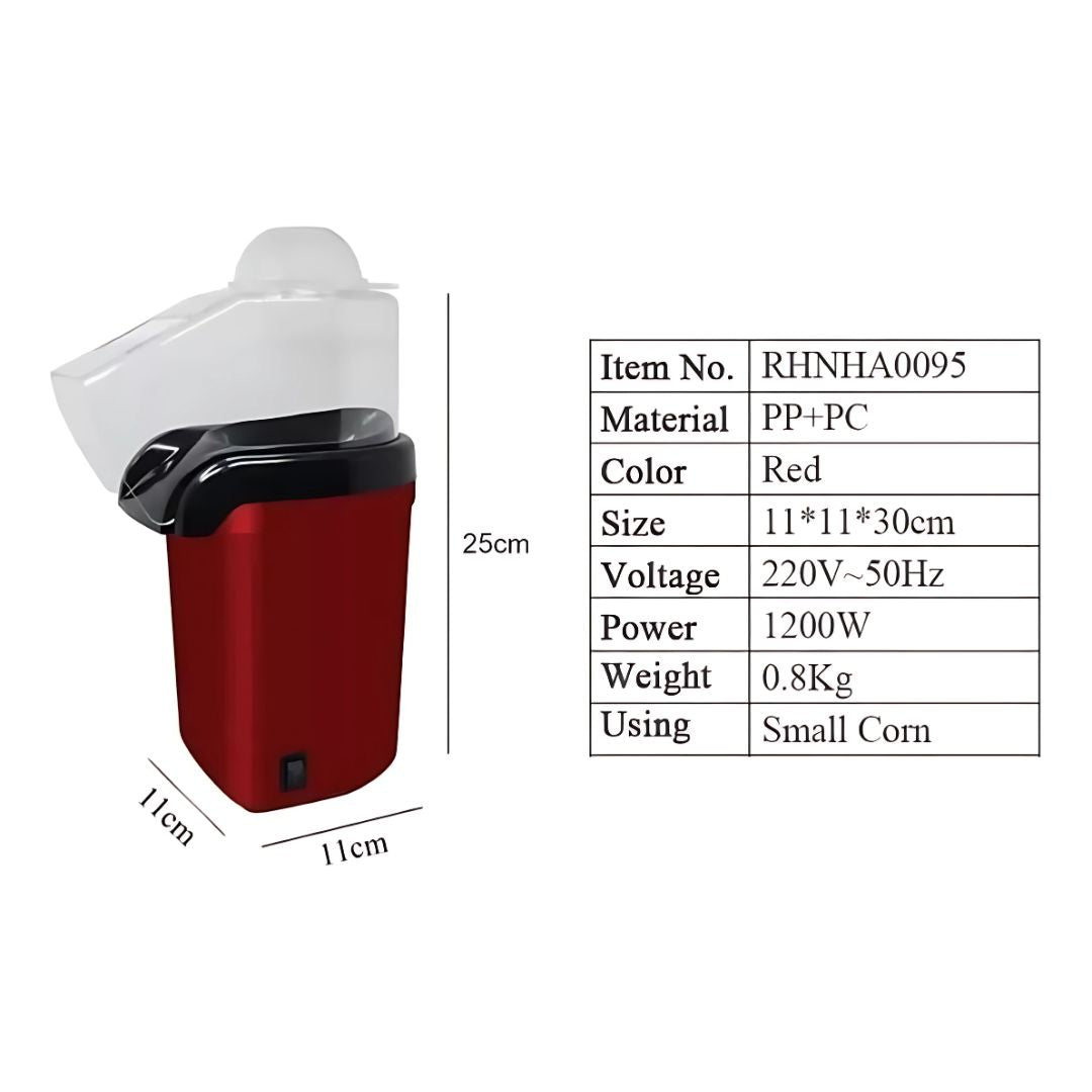 - Potencia de 1200 W: Suficiente para preparar palomitas en pocos minutos con aire caliente, sin necesidad de aceite.