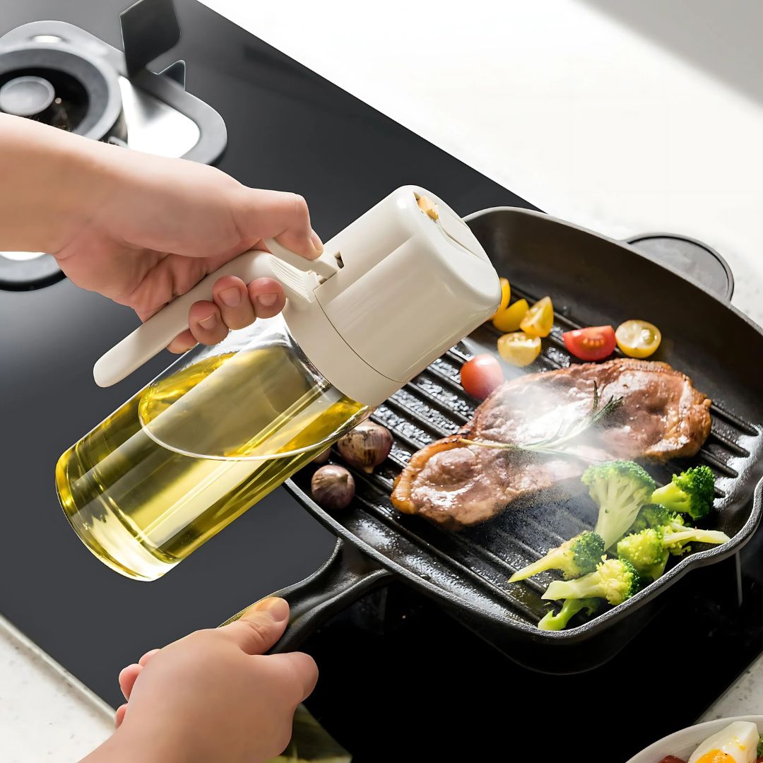 El Dispensador de Aceite Spray 2 en 1 es mucho más que un simple utensilio de cocina. Es la herramienta que te permitirá llevar tus platos a un nivel superior, controlando la cantidad de aceite que utilizas y garantizando una preparación más saludable. 🥘🌟