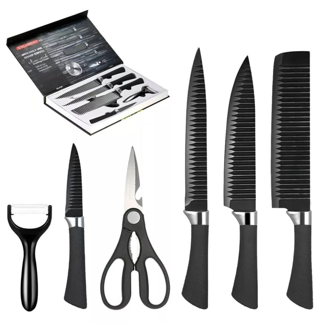SET DE CUCHILLOS DE COCINA NEGROS (x6)