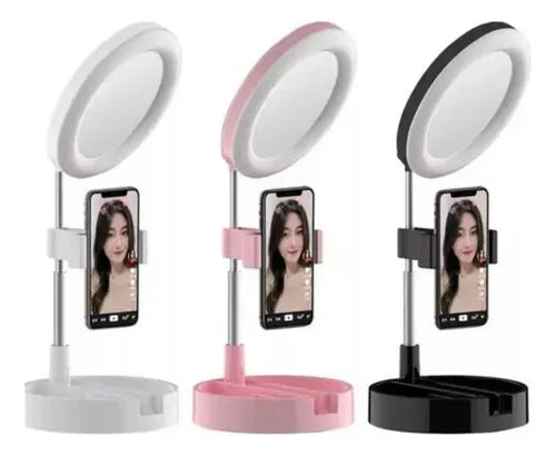 ARO DE LUZ CON ESPEJO Y SOPORTE PARA CELULAR – 3 MODOS DE ILUMINACIÓN